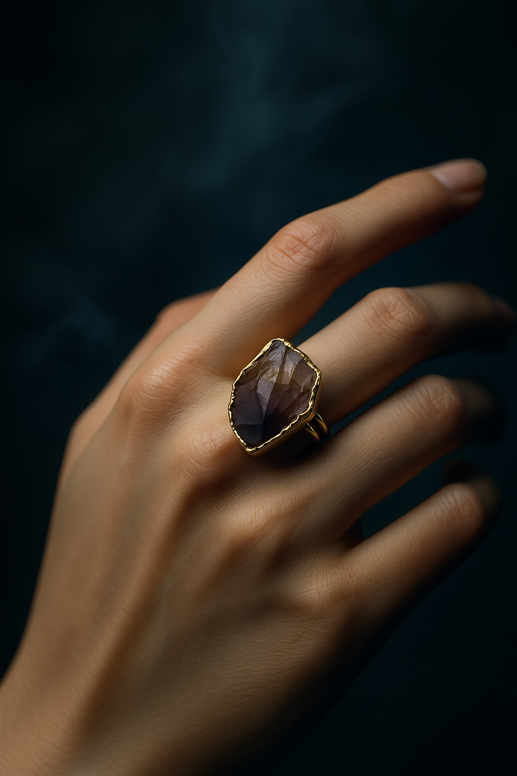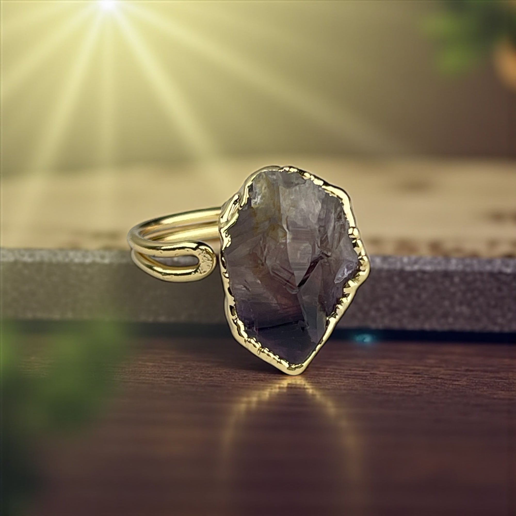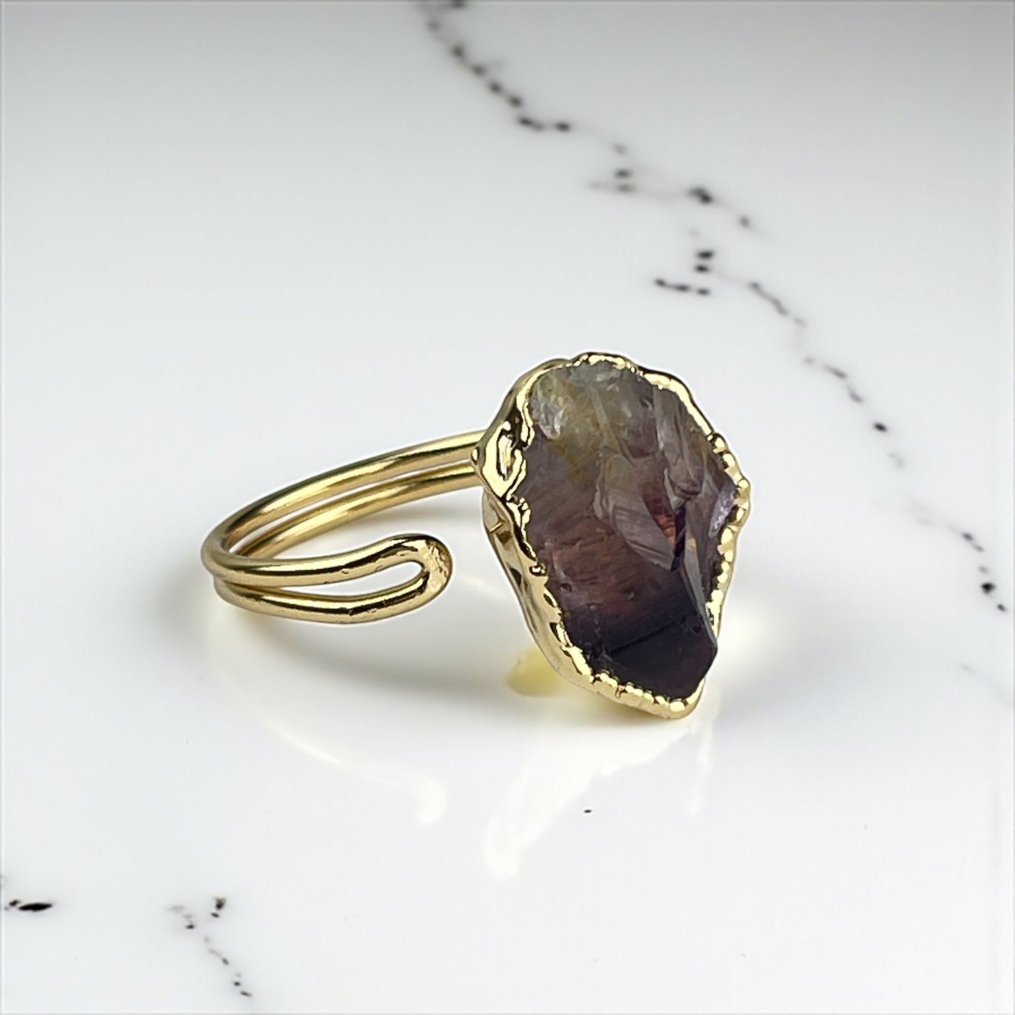 Vergoldeter Ring mit großem Roh-Rauchquarz – Handgefertigt, edel, nickelfrei & allergikerfreundlich