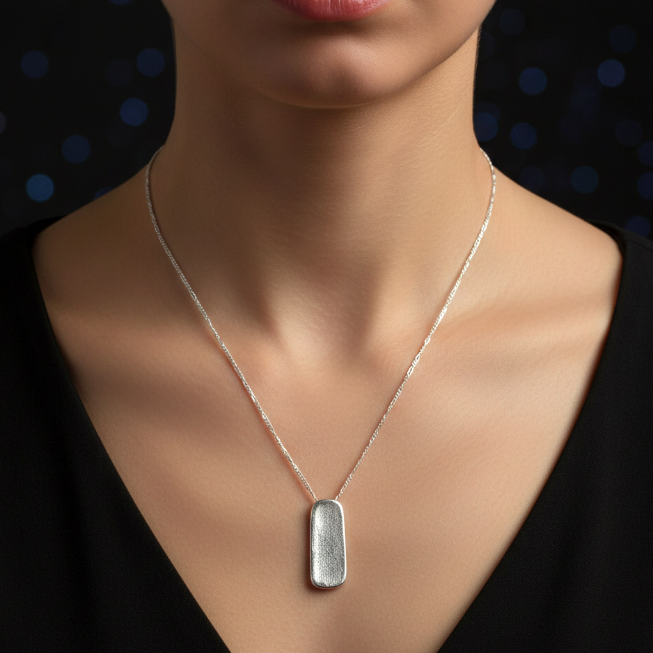 Der handgebürstete Anhänger (Maße: 23 mm) besticht durch seine feine, matte Oberfläche und seinen sanft organischen Look. Jeder Anhänger ist sorgfältig von Hand bearbeitet, wodurch jedes Stück ein unverwechselbares Unikat wird, ideal für alle, die Wert auf Individualität und echtes Handwerk legen.